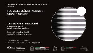 LE TEMPS EST DISLOQUÉ de Jacopo Giacomoni Première mondiale au Liban Théâtre Gulbenkian, LAU – Beyrouth 14 octobre, 20h00 Mise en scène d’Aliya Khalidi À travers un dispositif dramaturgique qui déconstruit et reconstruit le dialogue entre père et fils, Le Temps est Disloqué donne une forme plastique – sur scène et dans le langage – à […]