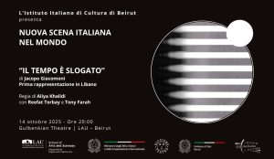 Nuova scena italiana nel mondo Teatro Gulbenkian – Beirut Nell’ambito della XXV Settimana della Lingua Italiana nel Mondo, dedicata al tema “Italofonia: lingua oltre i confini”, l’Istituto Italiano di Cultura di Beirut presenta l’evento centrale del programma: “Nuova scena italiana nel mondo”, una serata di teatro che unisce l’energia della nuova drammaturgia italiana alla creatività […]